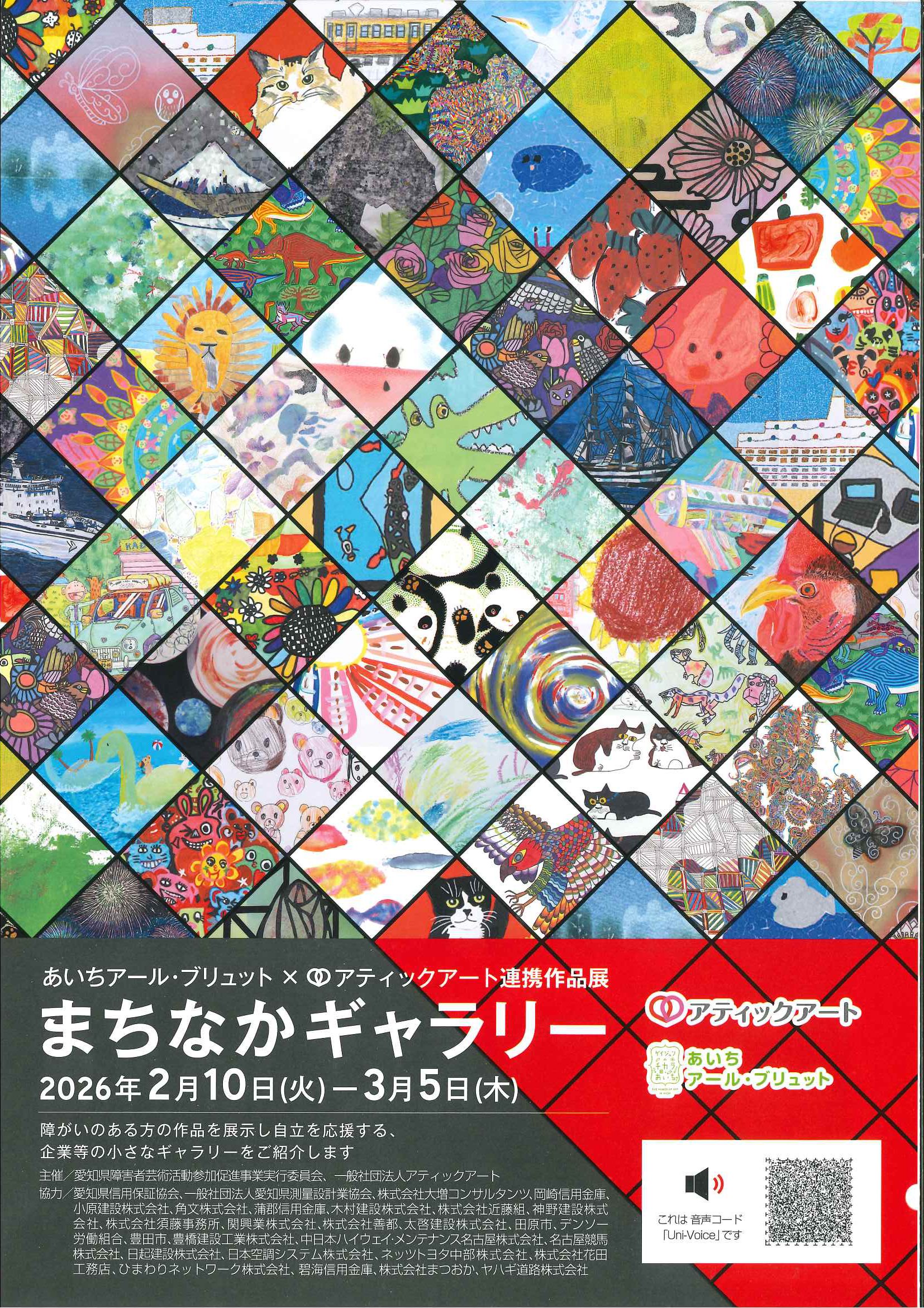 近藤グループでは、障がいがありながらも自立を目指す才能あるアーティストの応援を行っておりますが、昨年につづき愛知県障害者芸術活動参加促進事業実行委員会(愛知県健康福祉部障害福祉課内)と一般社団法人アティックアート主催の「あいちアール・ブリュット×アティックアート連携作品展 まちなかギャラリー」に協力しております。